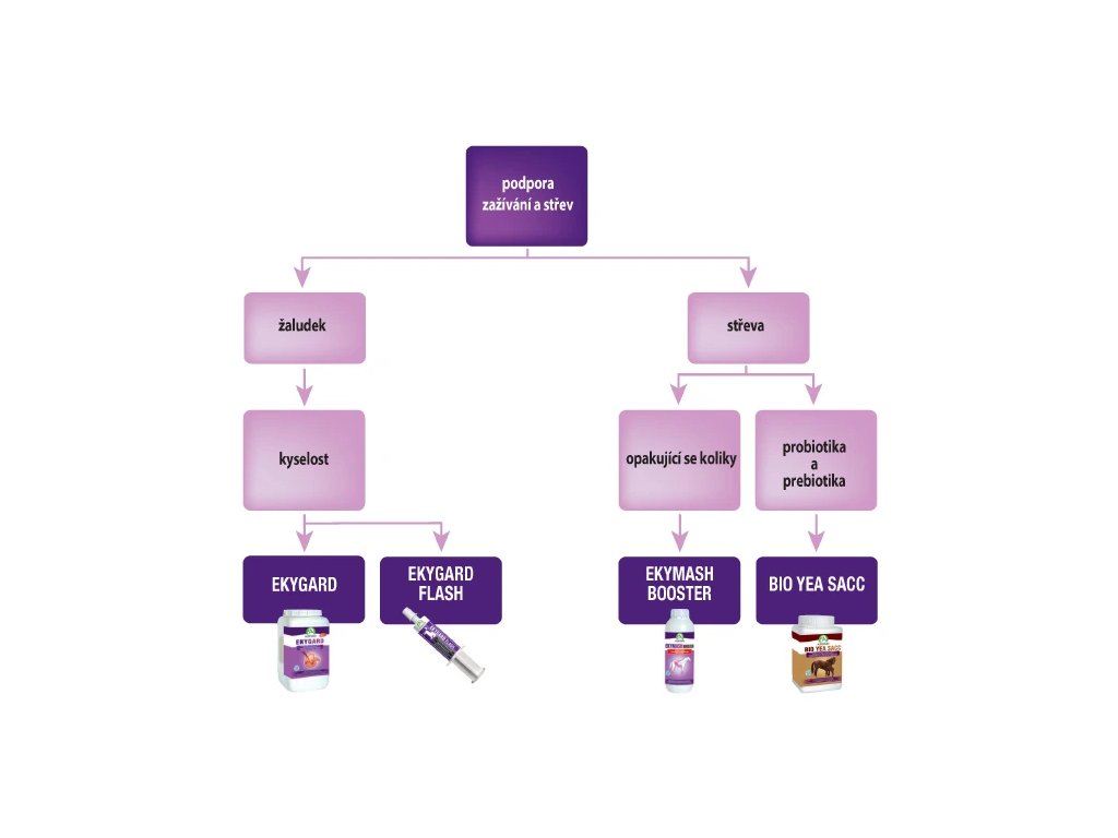 Doporučujeme předcházet období zvýšené žaludeční kyselosti, jako je transport, závody nebo medikace. EKYGARD FLASH podávejte 1–2× denně před a/nebo po období zvýšené kyselosti.