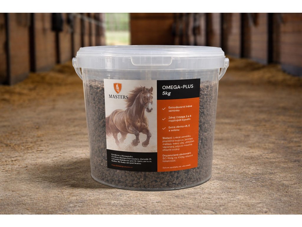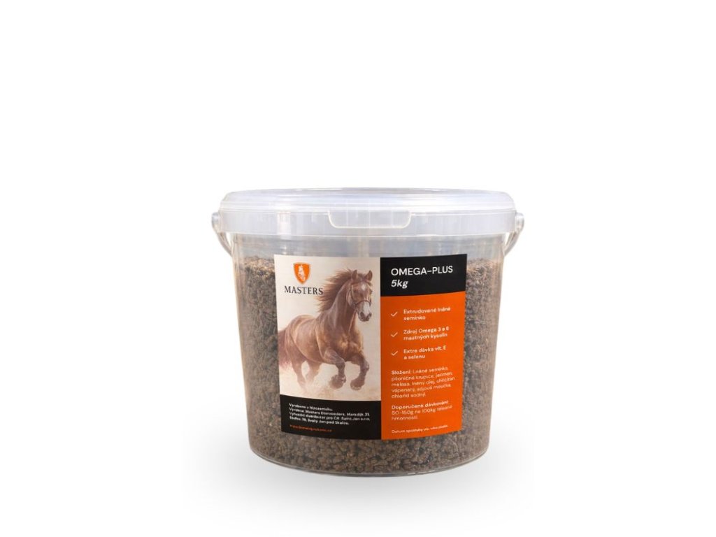 Masters Omega-Plus jsou vysoce energetické granule pro koně obohacené lněným olejem. Ten je výborným zdrojem energie a omega-3 mastných kyselin, které mají v těle koně protizánětlivý účinek. Granule obsahují také lněné semínko, které podporuje zdravou a lesklou srst.